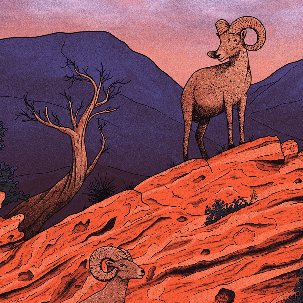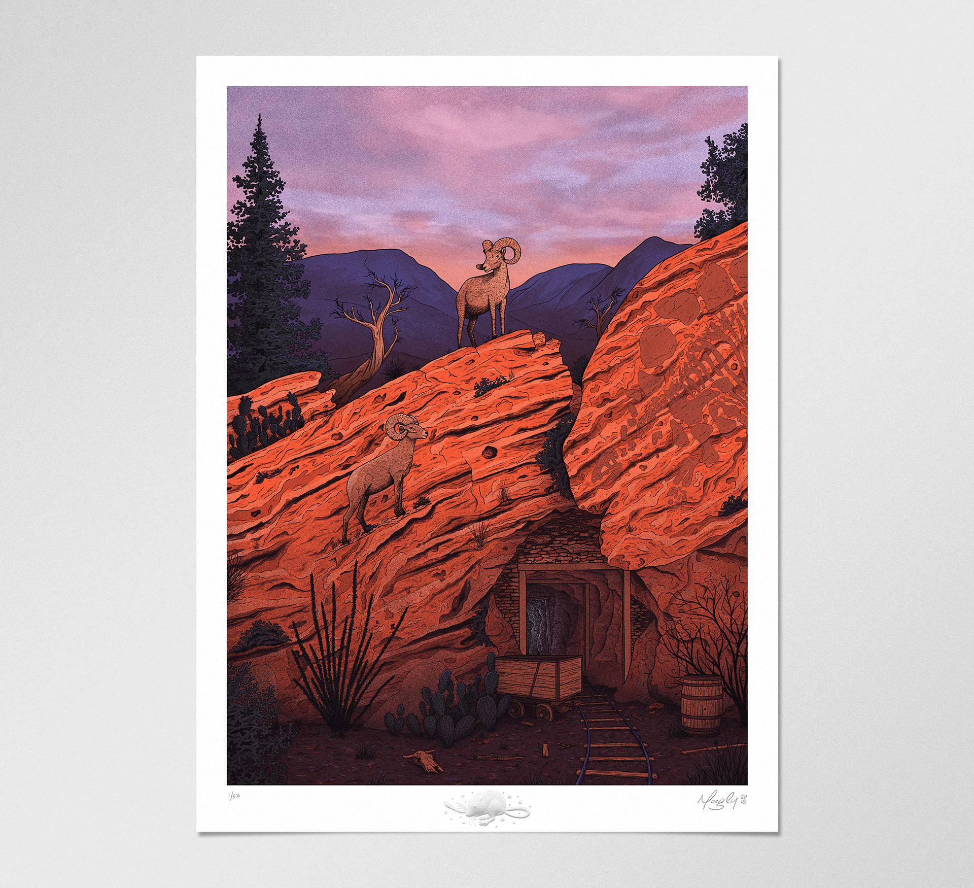 The Final Warm Glow is a time-limited, 18 x 24″, giclée art print that was released in July of 2018 in the Nicholas Moegly online store. The print was an attempt to capture the feel of a desert sunset when the sun casts a final warm glow against the burn orange rocks. The design was also used as a gig poster for the artist Ray LaMontagne for his show at Red Rocks, CO.